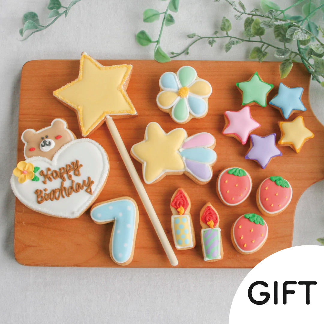 | クッキーサイズ | 【ハートくま】8×7.5【いちご】3×2.5【ろうそく】4.8×1.8 【星ポップ】5x5【デコ用お花】4.4x4.4 【デコ用星】 3x3 【流れ星】5×6.5 【0】:5 ×3.5/ 【1】:5×2.3/ 【2】:5.3×3.7/ 【3】:5×3.5/ 【4】:5×4.5/ 【5】:5×3.5/ 【6】:5.3×4/ 【7】:5×3.5/ 【8】:5×4/ 【9】:5.3×4 |